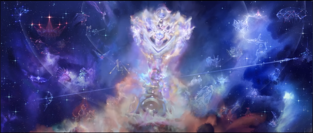 Ми знову віддаляємося, і нас зустрічає Кубок Заклинача, що яскраво світиться на зоряному небі, оточений безліччю сузір’їв та ще більше посилань!